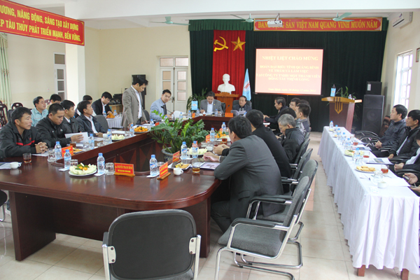 Sáng ngày 26/12 Công ty TNHH MTV Đóng tàu Thịnh Long đón tiếp đoàn đại biểu tỉnh Quảng Bình về thăm và làm việc tại Công ty, với nhiệm vụ chủ yếu là học tập kinh nghiệm thực hiện nghị định 67/2014/NĐ-CP và tham quan một số cơ sở đóng tàu vỏ thép.